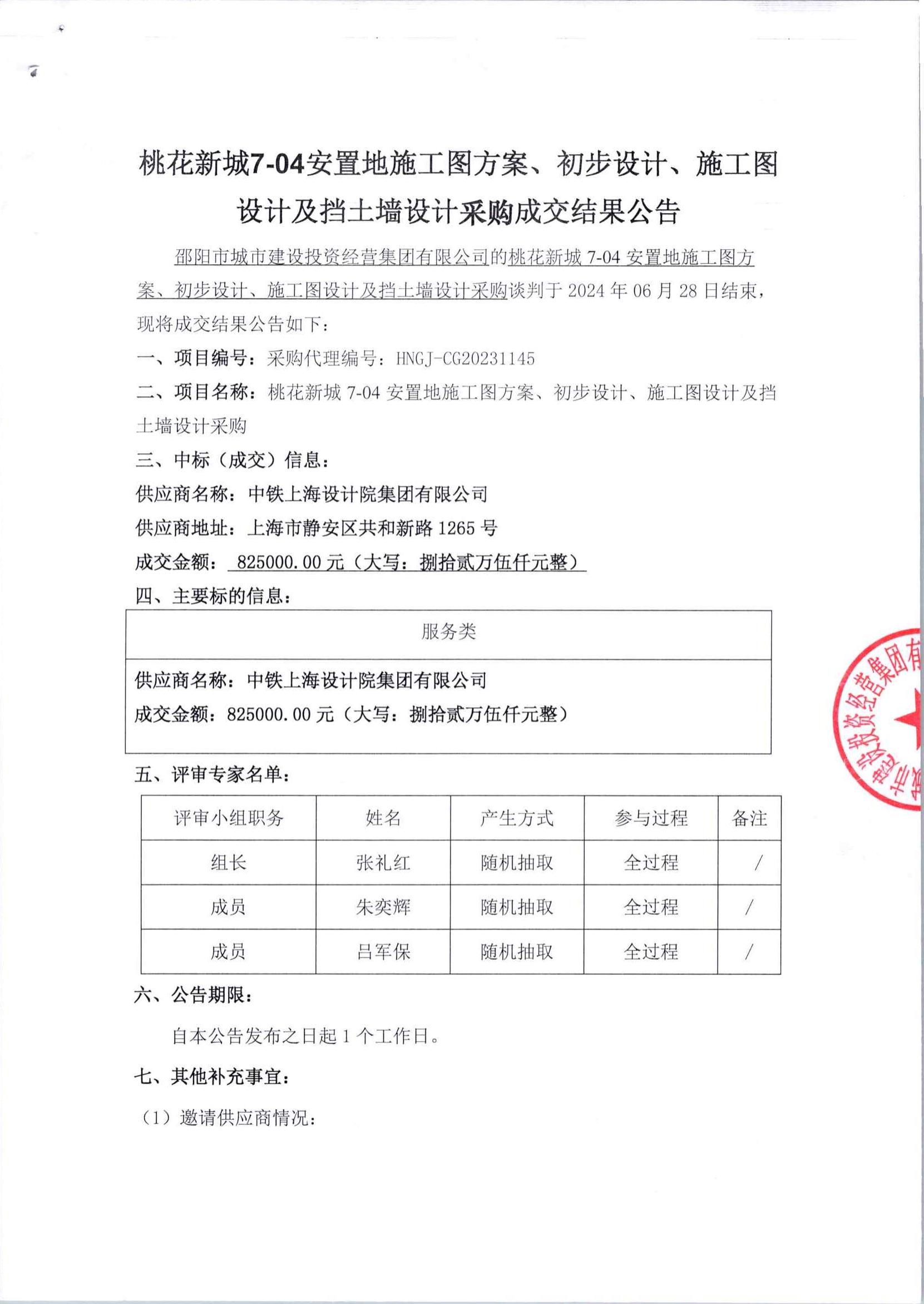 桃花新城 7-04#安置地目施工圖方案、初步設(shè)計(jì)及施工圖設(shè)計(jì)及擋土墻設(shè)計(jì)成交公告