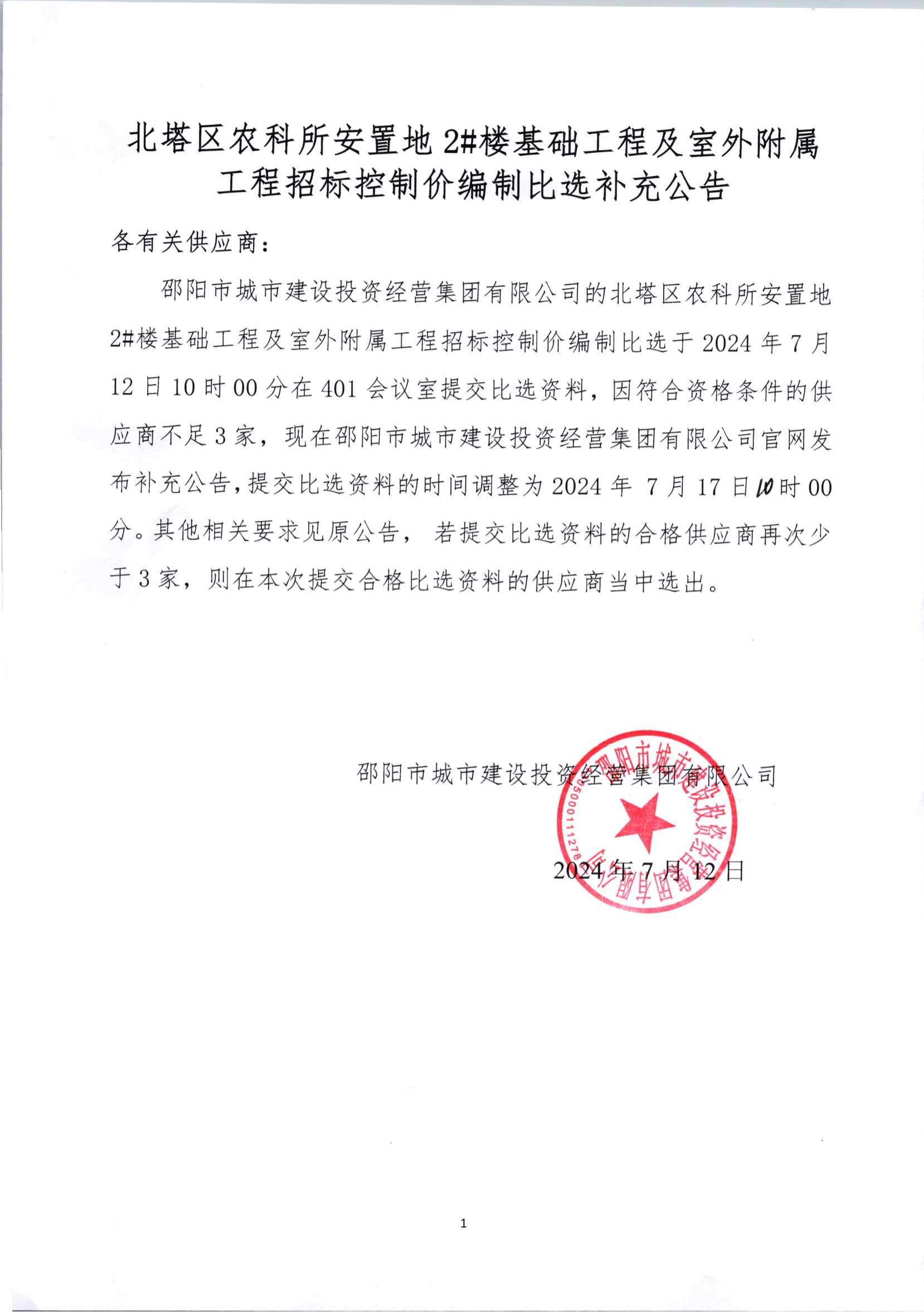 北塔區(qū)農(nóng)科所安置地預(yù)算編制比選補充公告