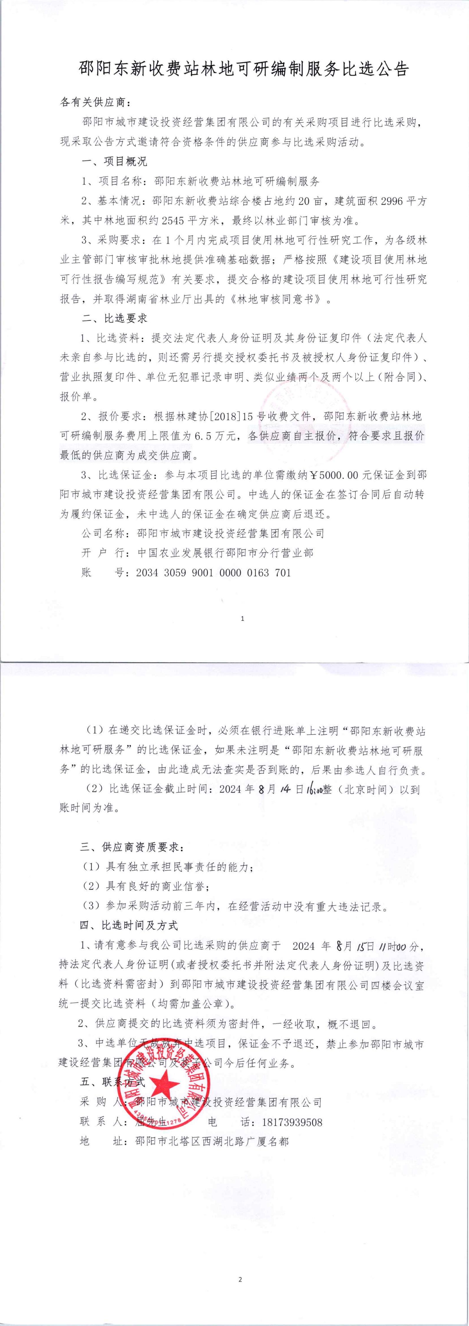邵陽東新收費站林地可行性研究報告編制比選公告