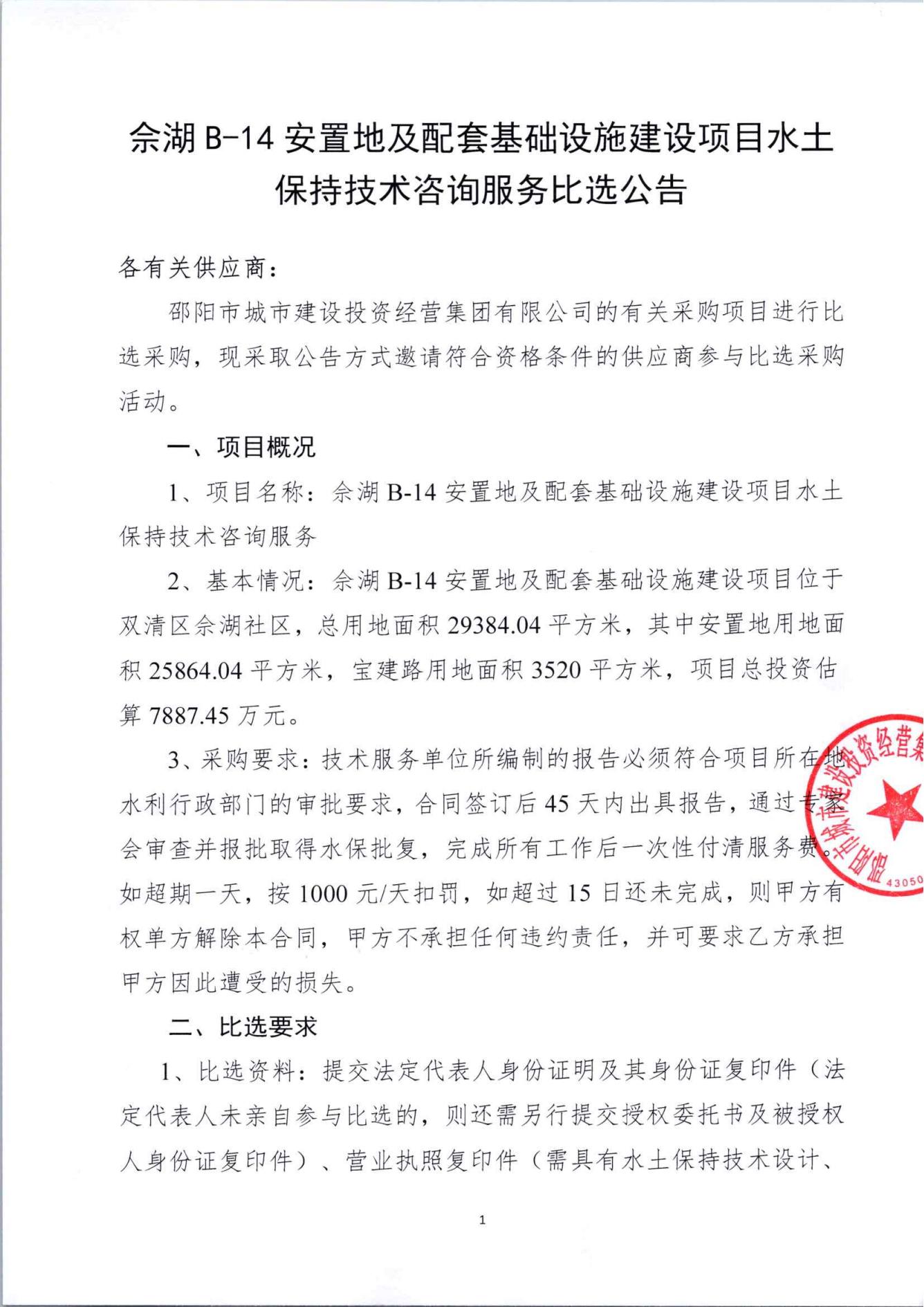 佘湖B-14安置地及配套基礎(chǔ)設(shè)施建設(shè)項目水土保持技術(shù)咨詢服務(wù)比選公告..