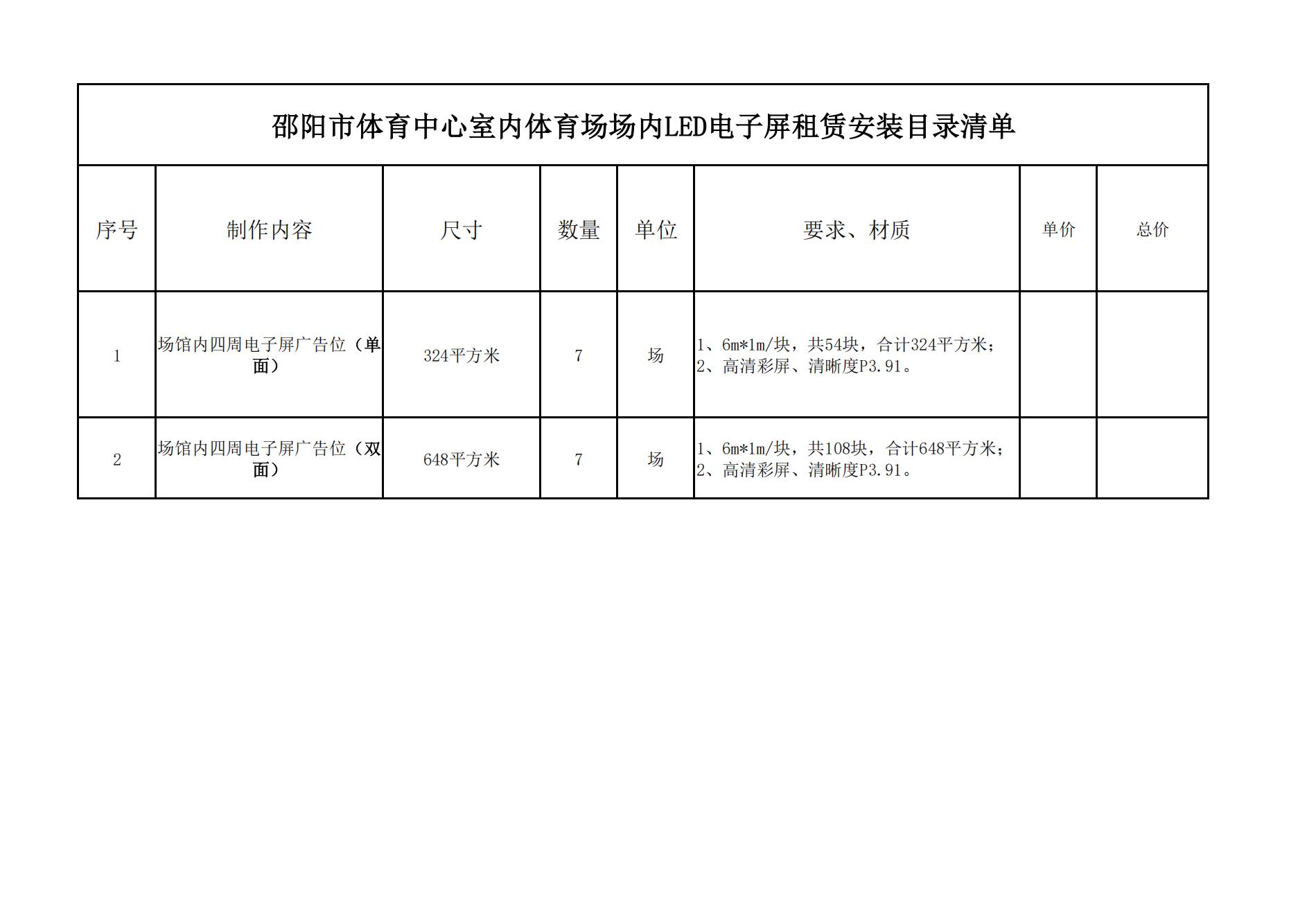 邵陽市體育中心室內(nèi)體育場場內(nèi)LED電子屏租賃安裝比選公告..