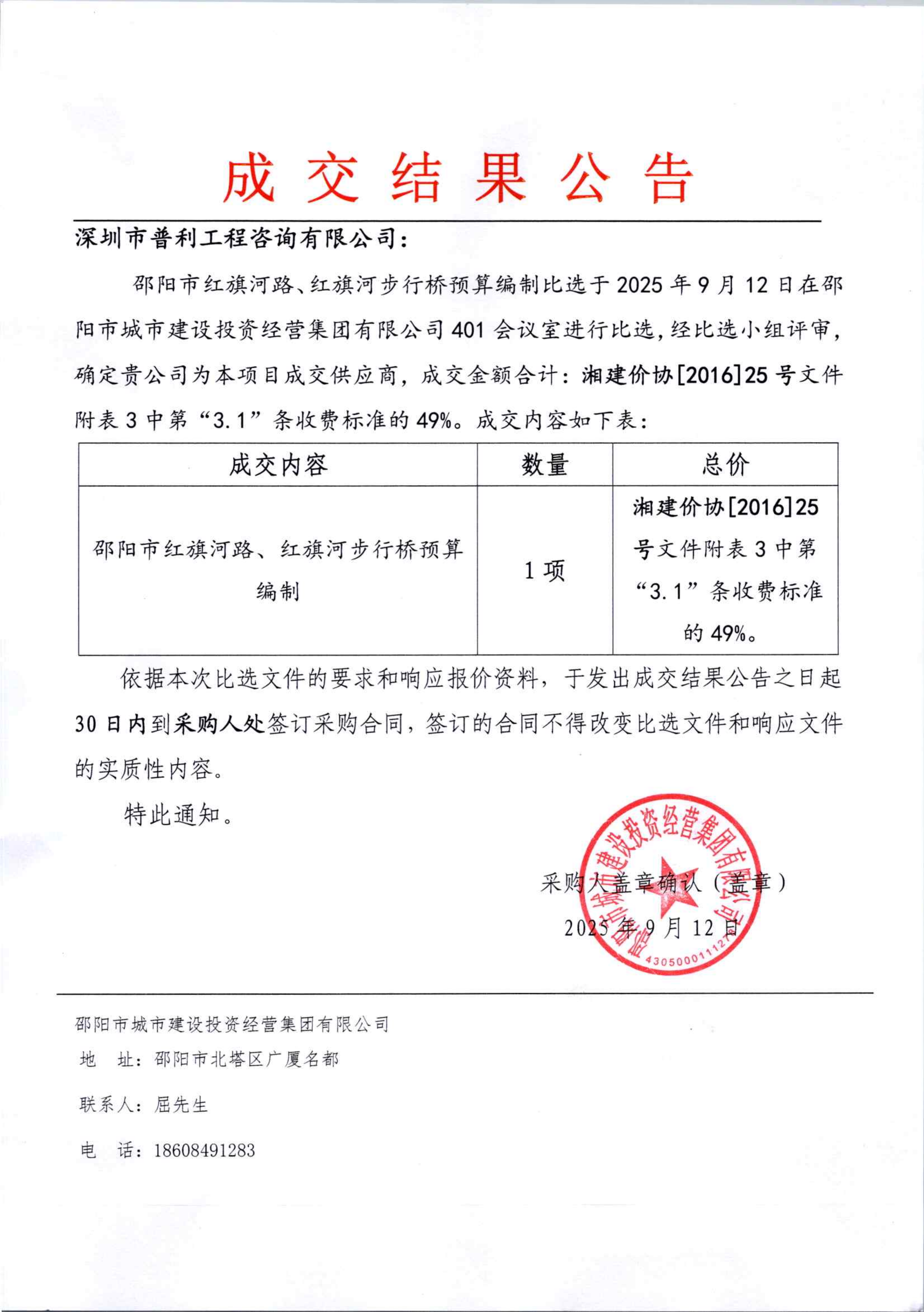 紅旗河路、紅旗河步行橋預算編制比選成交公告