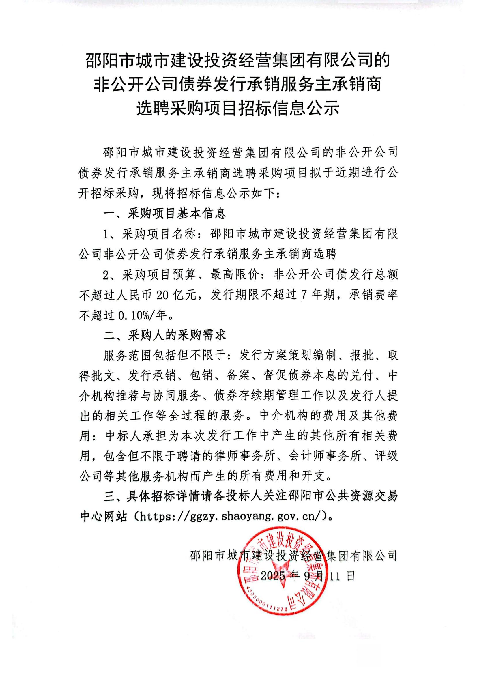 非公開公司債券發(fā)行承銷服務(wù)主承銷商選聘采購(gòu)項(xiàng)目招標(biāo)信息公示..